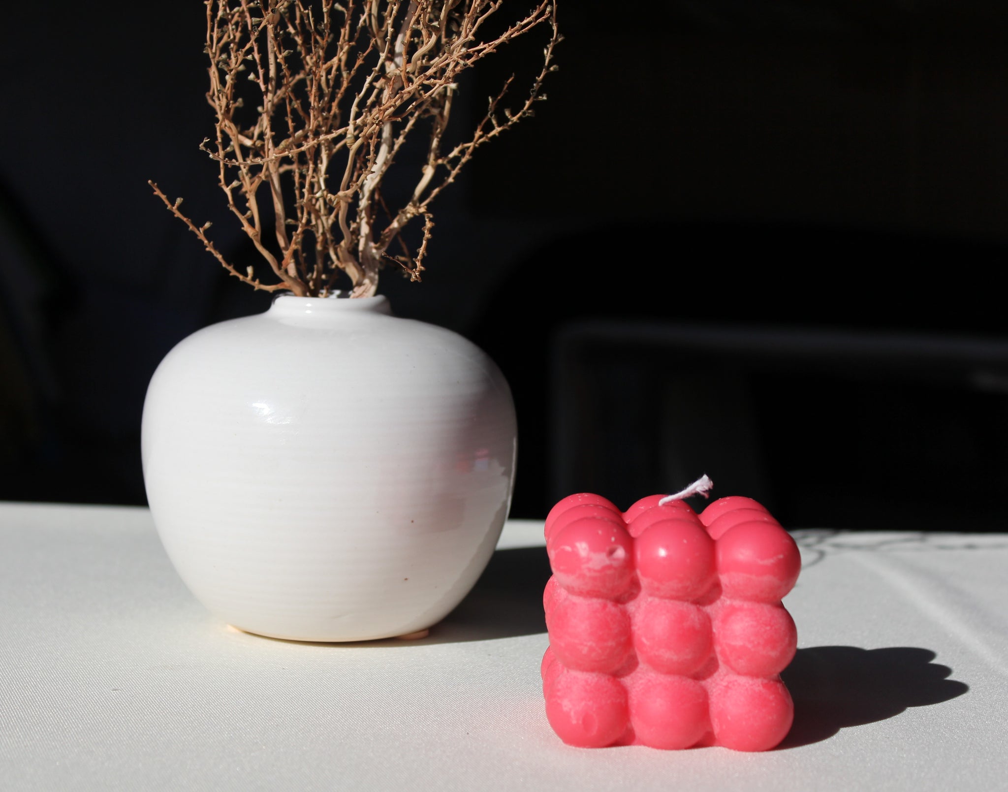 The Bubble Cube Candle is a unique candle that gives you the most beautiful way to decorate your home. Each Bubble Candle is two inches height and width; perfect for any area of the home. Our scented candle includes a blend of premium fragrance oils with 100% soy wax. All candles are vegan, cruelty fee, home-made and hand-poured so color, scent and appearance may vary slightly. Sit back and enjoy with a scented candle for a cozy afternoon or evening in the home. Add this stylish candle to your living room, bedroom or office!